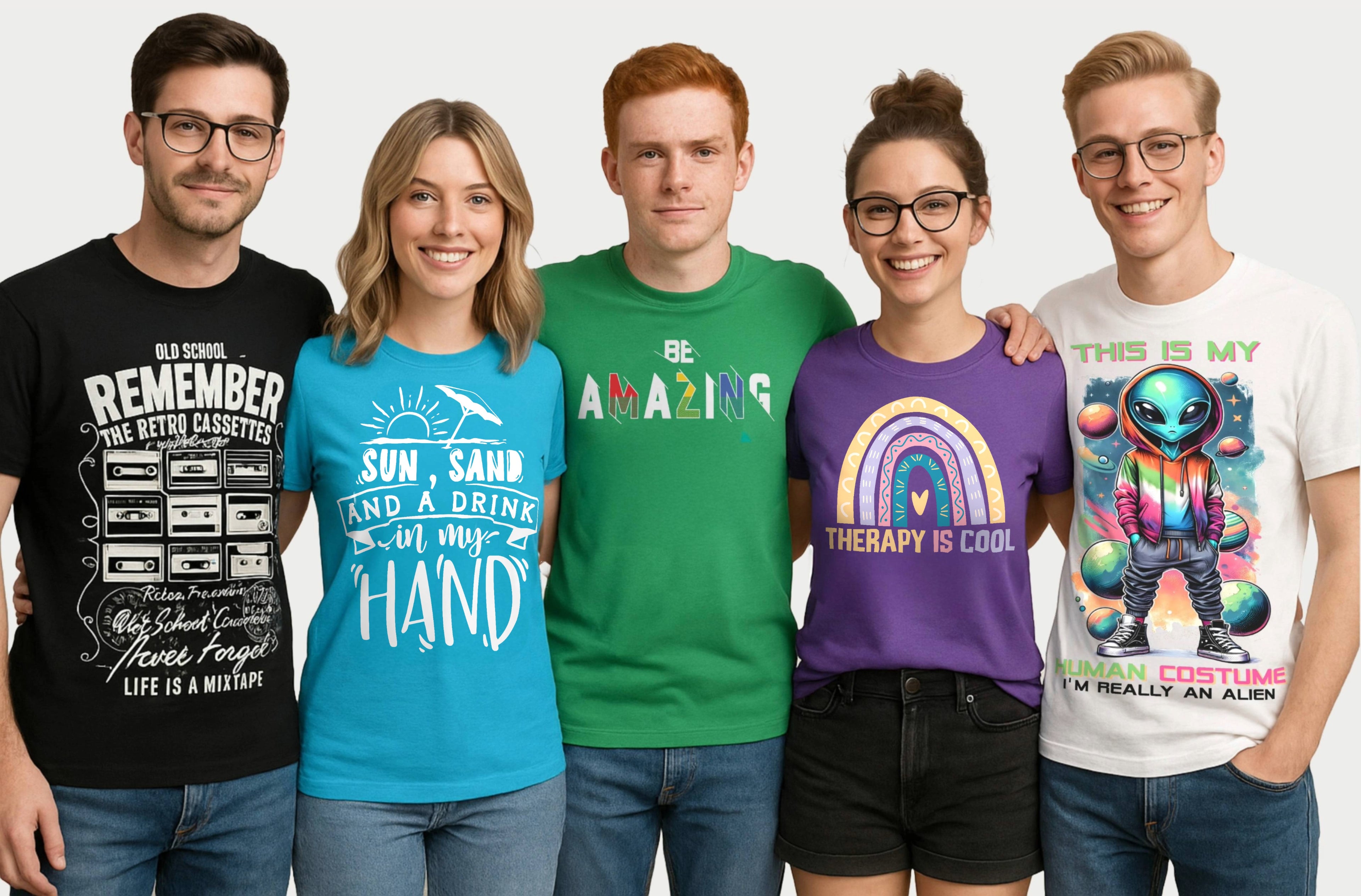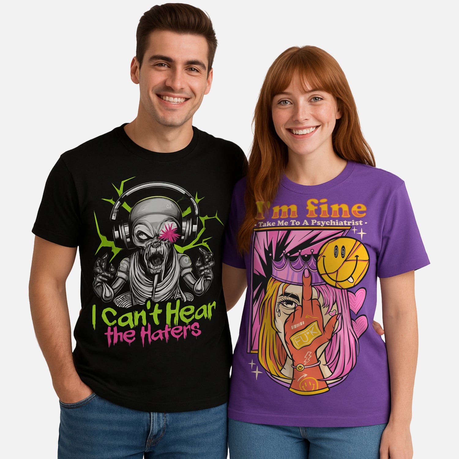 Soft, stylish, a relaxed fit, and made for literally everyone. No rules, no labels—just tees that feel good and look even better.From quirky graphics to cheeky slogans, we've got the perfect tee to make a statement. Stand out from the crowd and let your personality shine because let's face it, life's too short for boring t-shirts