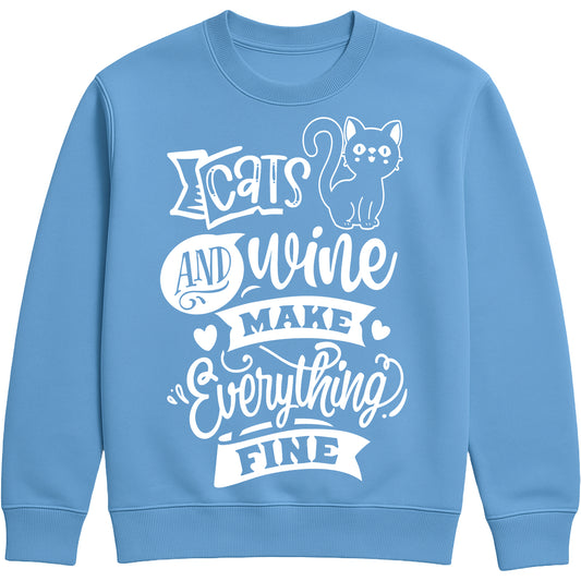 Cats And Wine Make Everything Fine Sweatshirt - Funny Gift for Pet Lovers